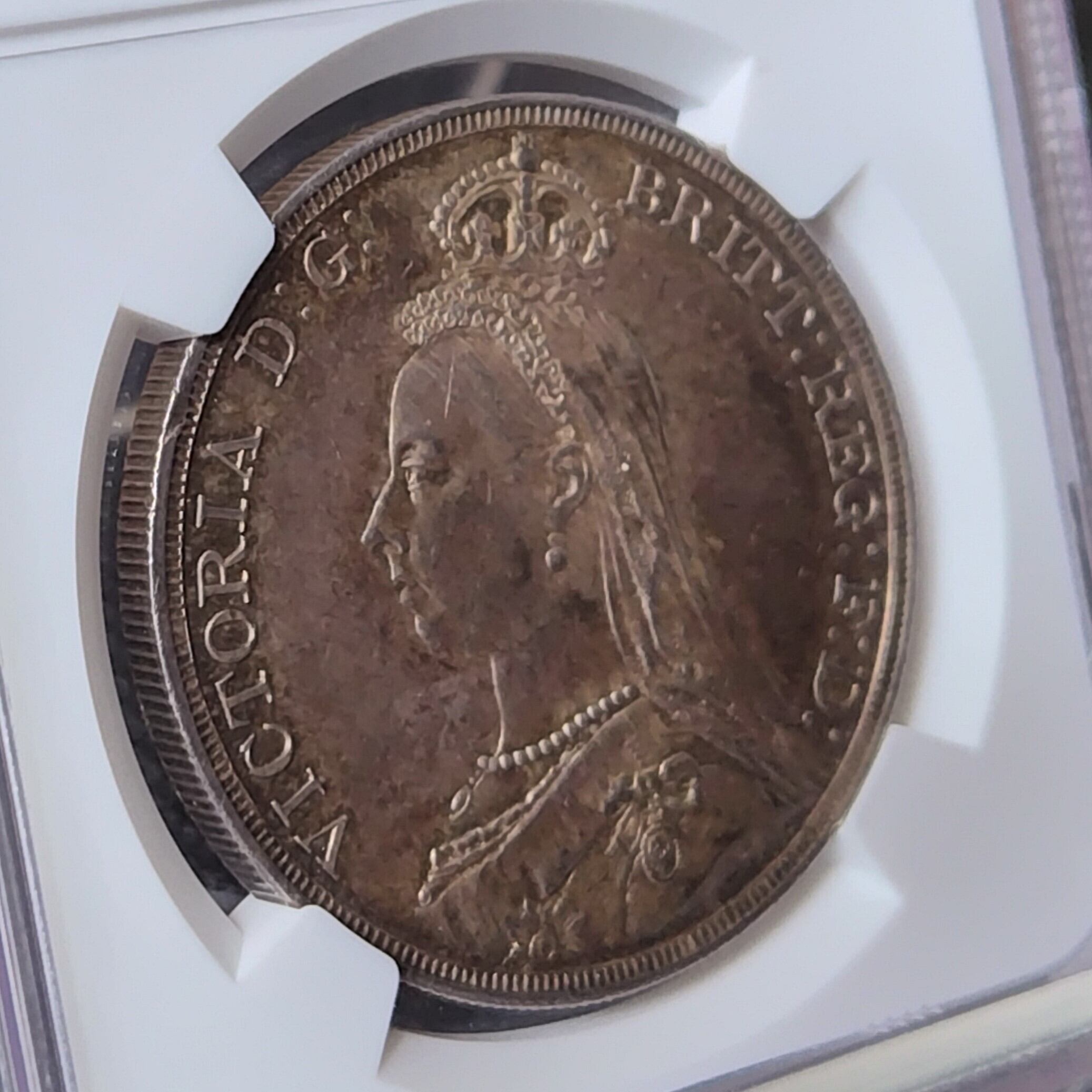 ★女王のクラウン銀貨★1887年/イギリス/MS62/ジュビリーヘッド/銀貨/1クラウン/NGC/ヴィクトリア/稀少/アンティークコイン