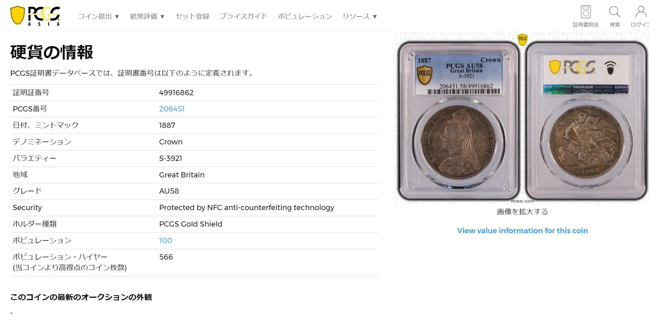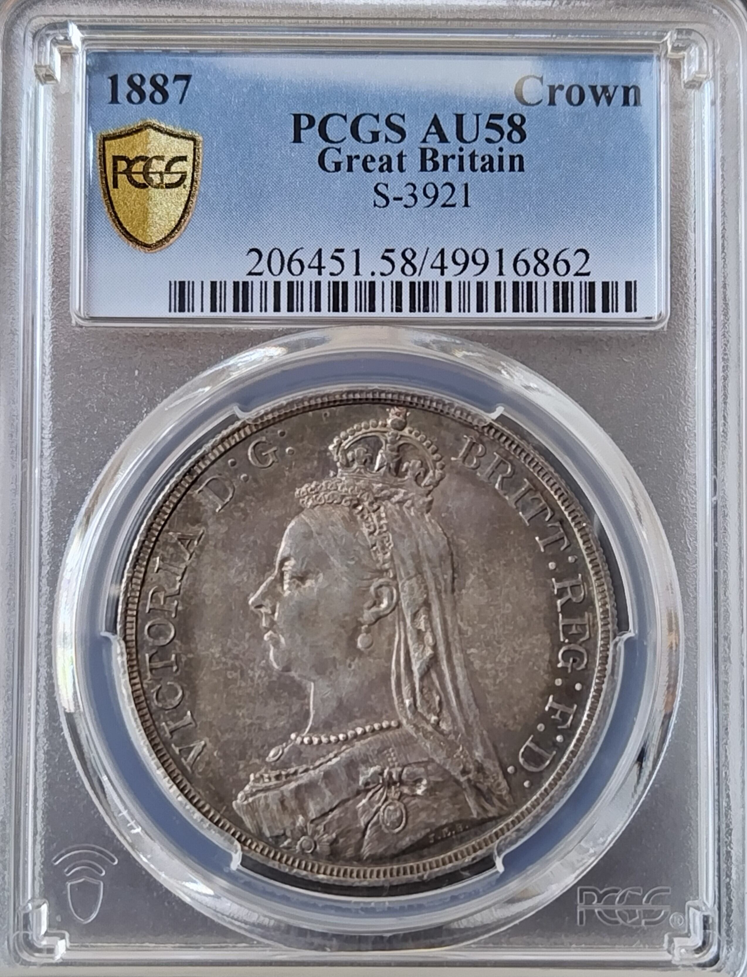 ★女王のクラウン銀貨★1887年/イギリス/AU58/ジュビリーヘッド/銀貨/1クラウン/PCGS/ヴィクトリア/稀少/アンティークコイン 1887年/イギリス/AU58/銀貨/1クラウン/NGC/ヴィクトリア