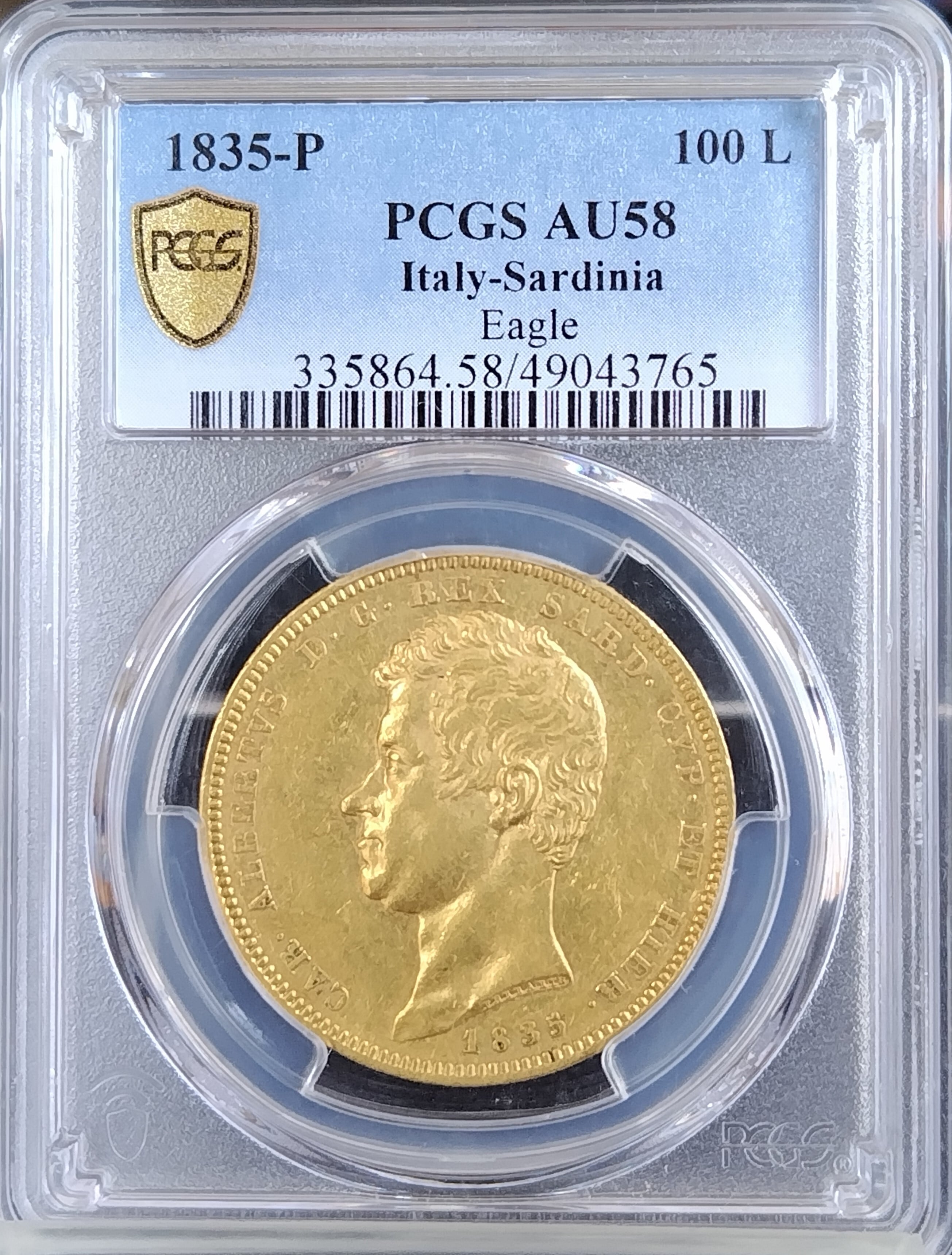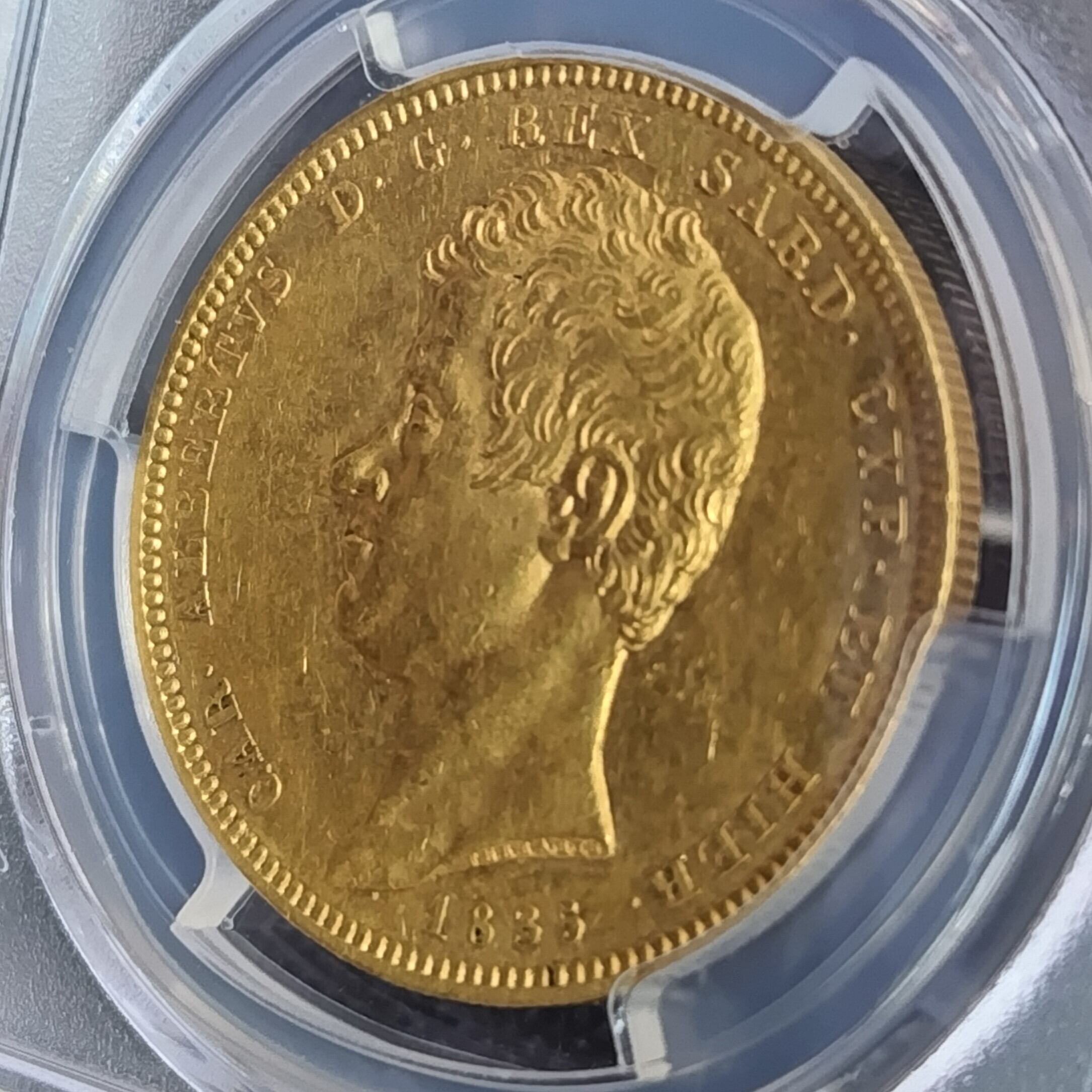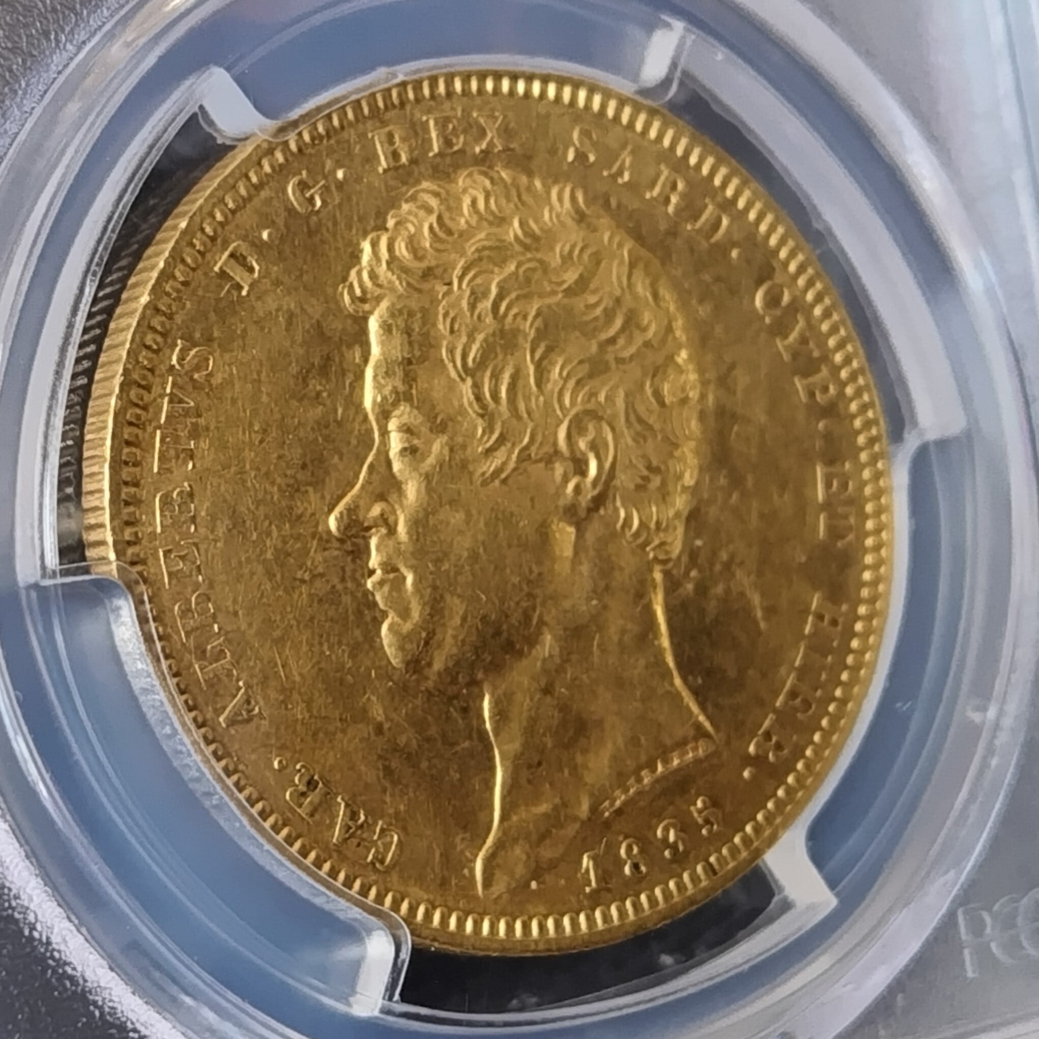 ★イタリア統一前夜★1835年/イタリア/サルデーニャ王国/AU58/カルロ・アルベルト/金貨/100リラ/NGC/サヴォイア/サルジニア/サルディーニャ