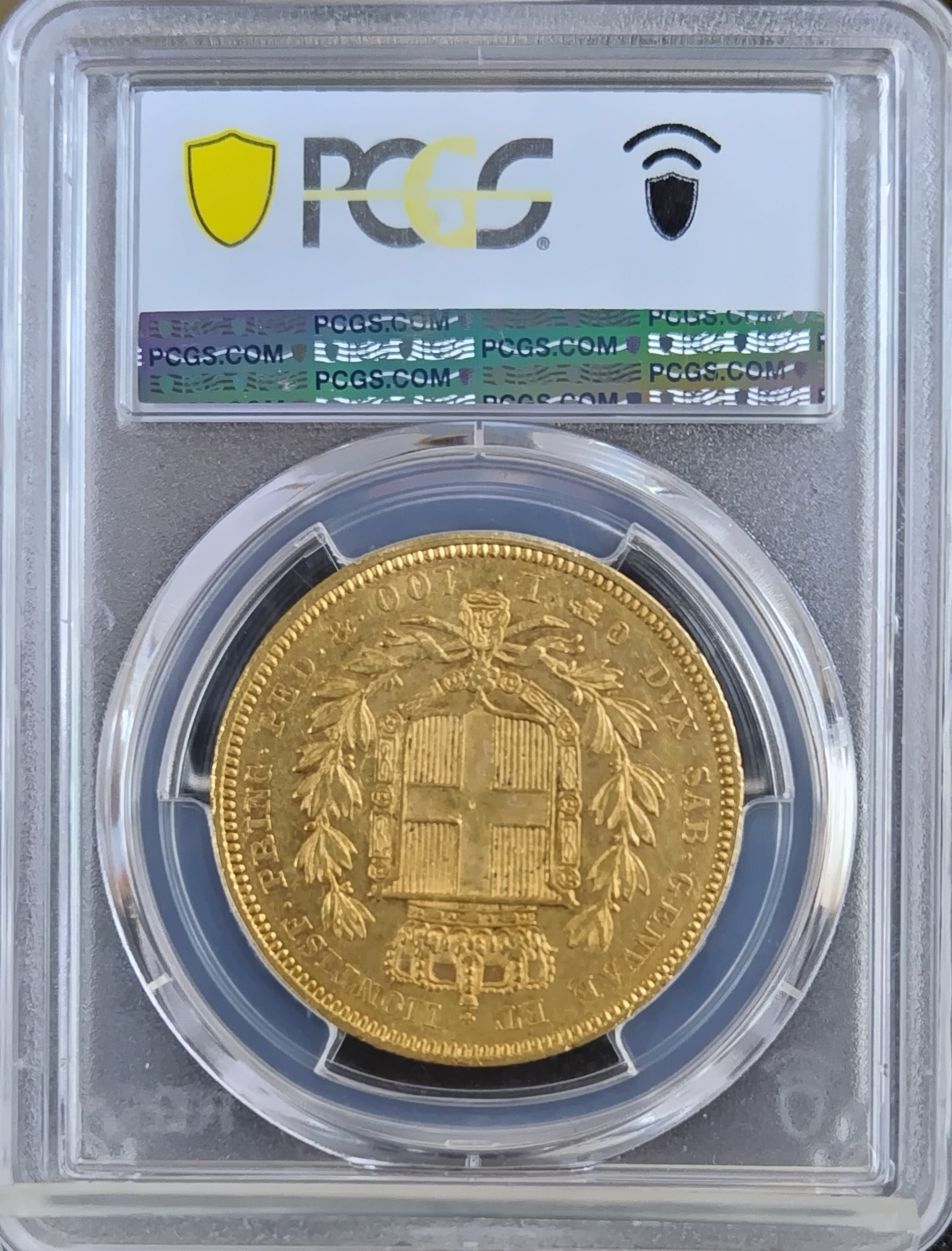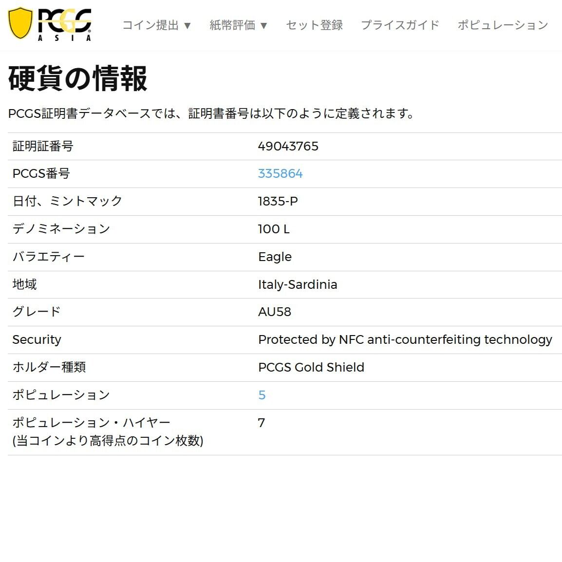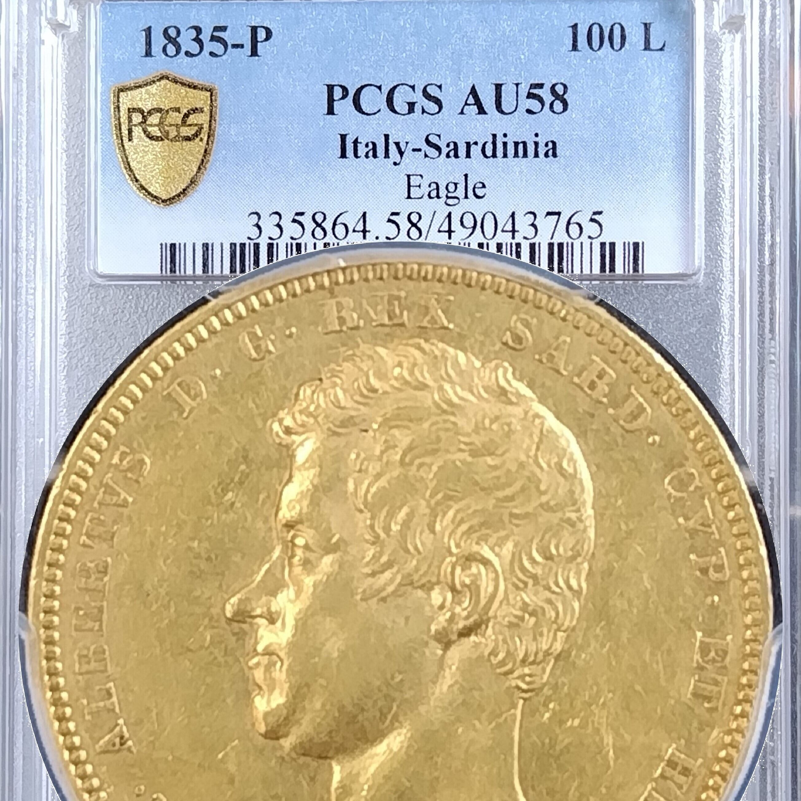 ★イタリア統一前夜★1835年/イタリア/サルデーニャ王国/AU58/カルロ・アルベルト/金貨/100リラ/NGC/サヴォイア/サルジニア/サルディーニャ