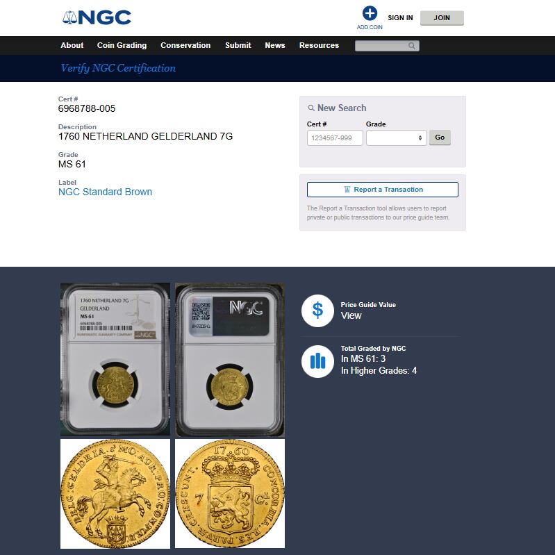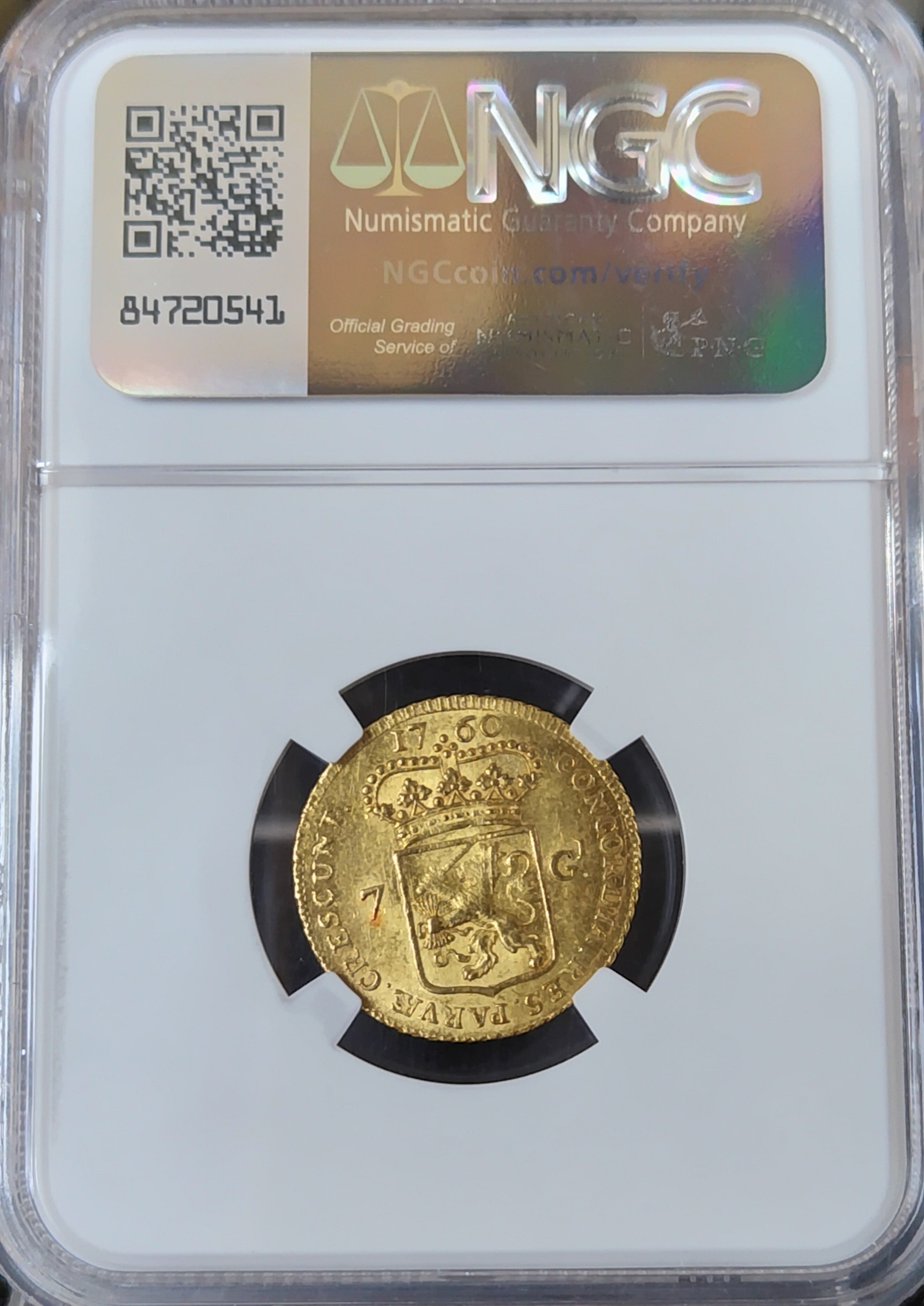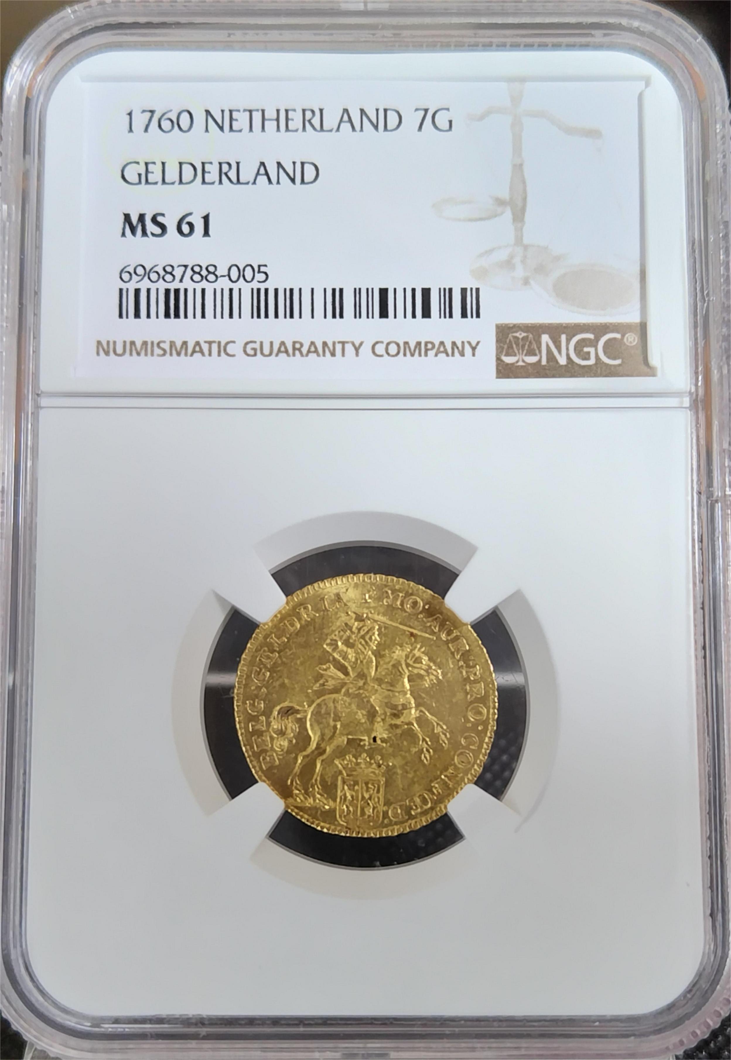 ★馬上の騎士★1760年/オランダ/MS61/金貨/7ギルダー/NGC/グルテン/ヘルダーラント/ネーデルランド/ライダー