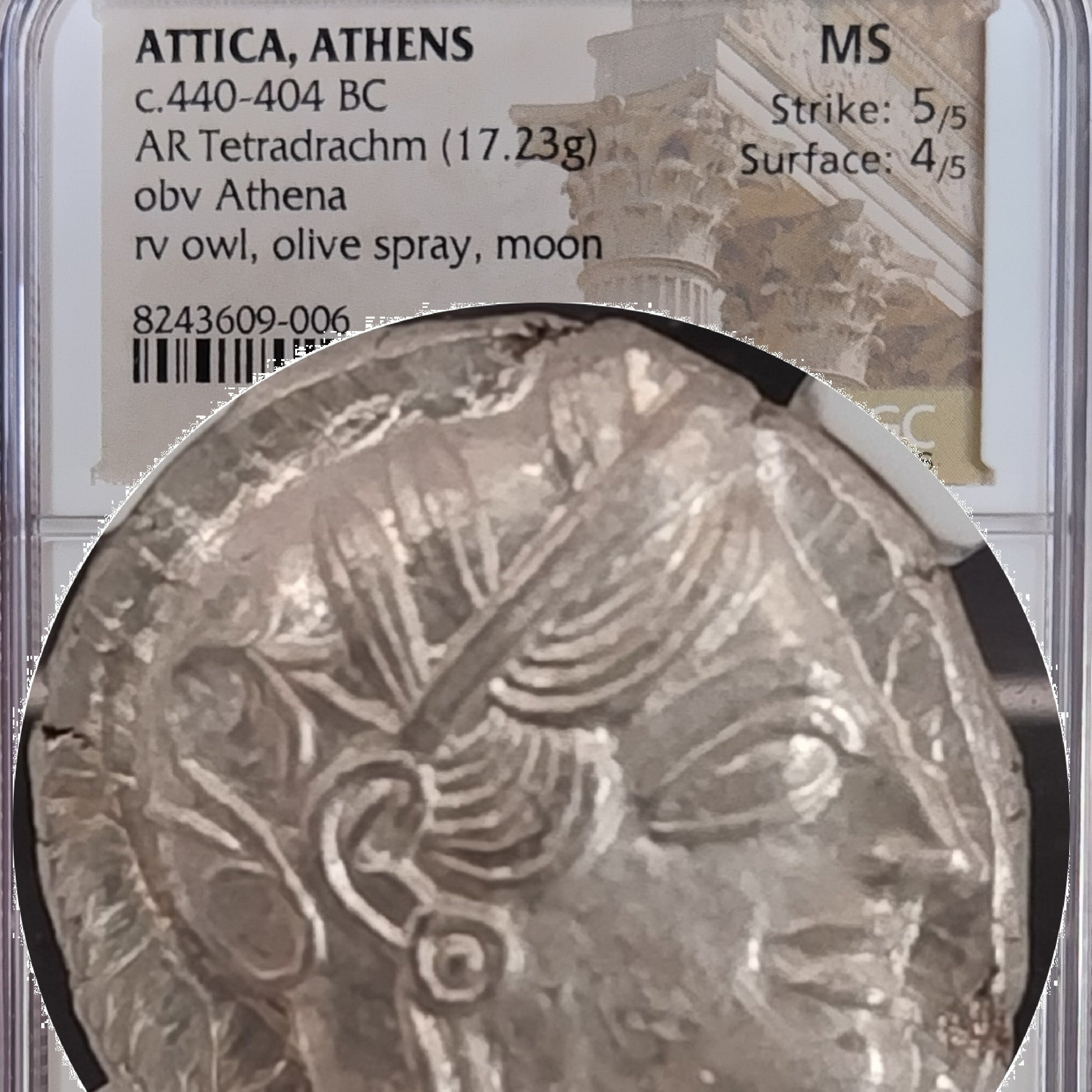 ★古代ロマンの銀貨 MS 5/5 4/5★紀元前440~404年/アテナ/MS/テトラドラクマ/アッティカ/フクロウ/銀貨/NGC/アテナイ/アテネ/BC