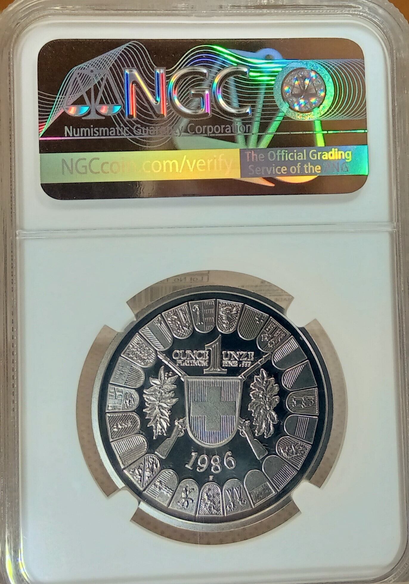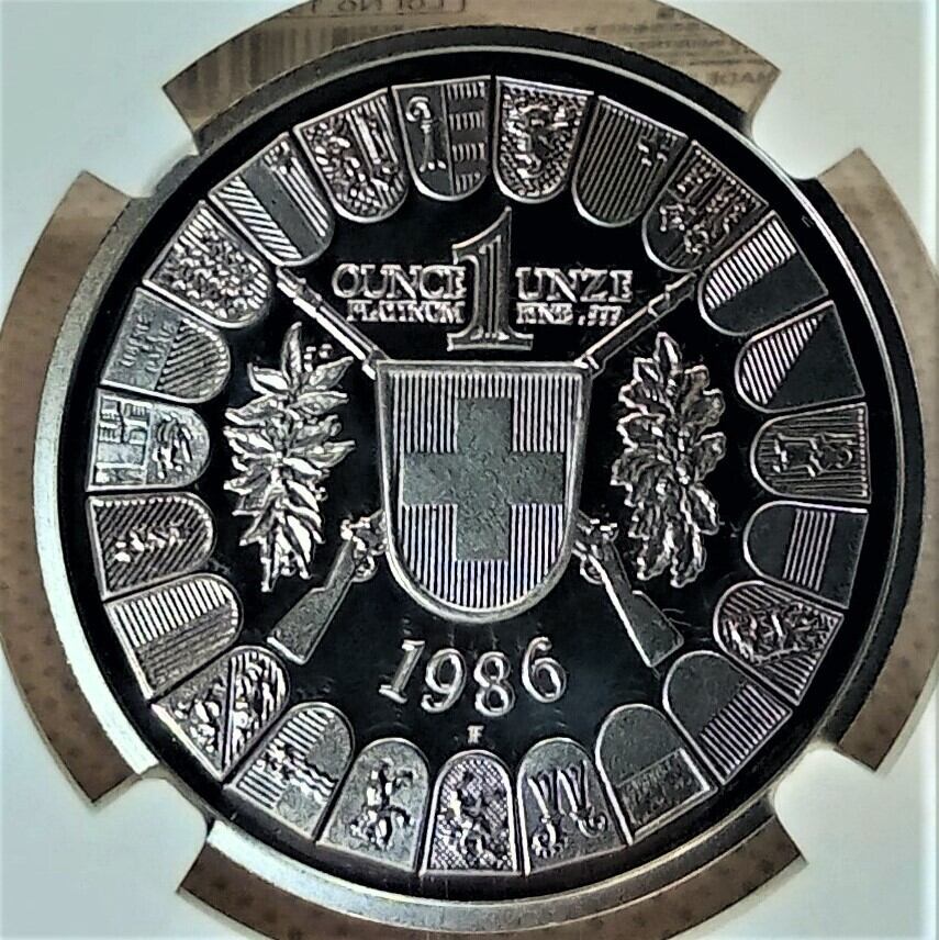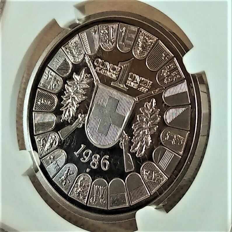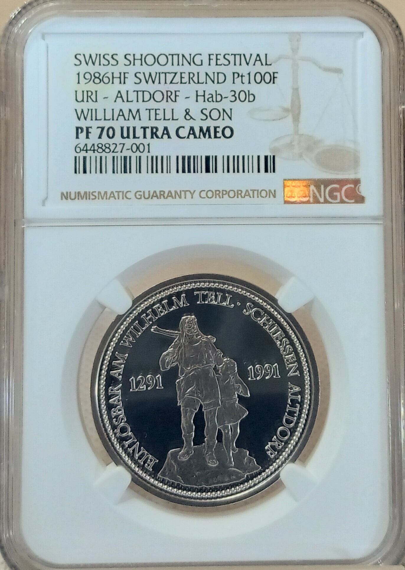 ★プラチナ貨 最高鑑定★1986年/スイス/PF70/ウーリ射撃祭/100フラン/NGC/ウィリアムテルと息子/稀少/投資/アンテークコイン