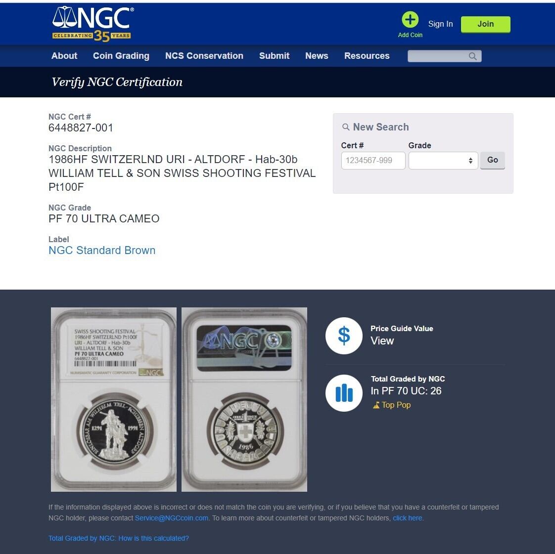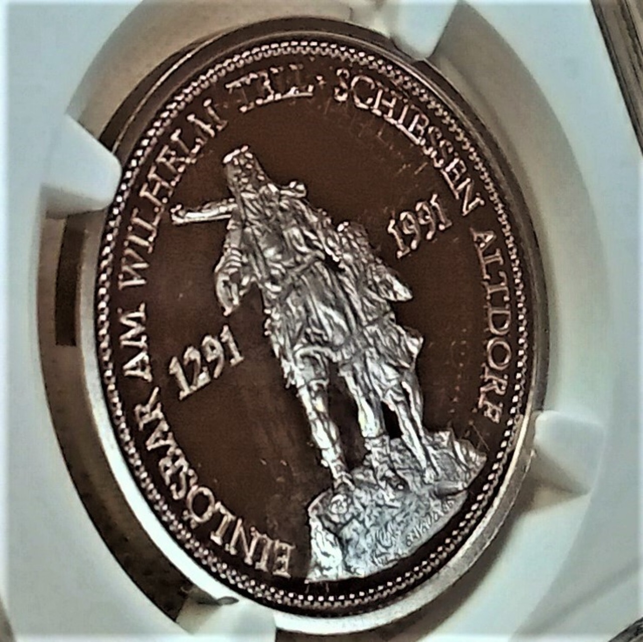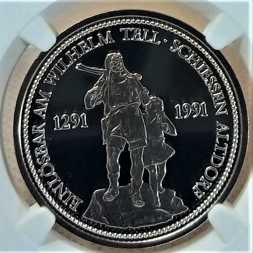 ★プラチナ貨 最高鑑定★1986年/スイス/PF70/ウーリ射撃祭/100フラン/NGC/ウィリアムテルと息子/稀少/投資/アンテークコイン